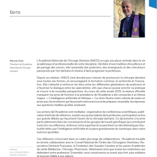 Je nous souhaite une belle année académique et vive notre Académie Nationale de Chirurgie Dentaire ! »