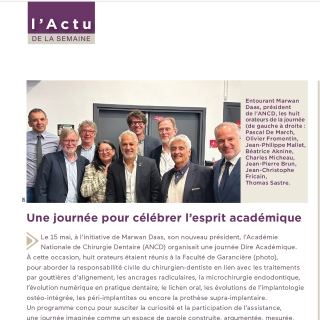 Le 15 mai, à l'initiative de Marwan Daas, son nouveau président, l'Académie Nationale de Chirurgie Dentaire (ANCD) organisait une journée Dire Académique. Lire...