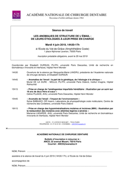 Séance de travail de l'Académie : «Les anomalies de structure de l'émail : de leurs étiologies à leur prise en charge»