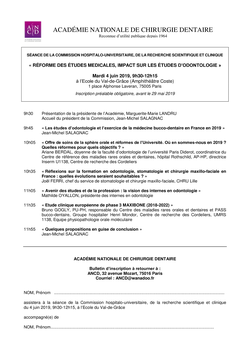 Séance de la Commission hospitalo-universitaire, de la recherche scientifique et clinique : «Réforme des études médicales, impact sur les études d'odontologie»