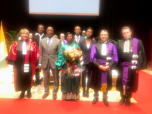 La Ministre Ramata Bakayoko L’y, membre associé étranger de notre compagnie, vient d’être faite Docteur Honoris Causa de l’université de Franche Comté pour ses travaux reconnus en tant qu’hospitalo-universitaire principalement en prévention, en tant que présidente d’université et l’implication de l’université de Cocody, aujourd’hui Université Houphouet Boigni, dans la création de pôles de recherches, mais surtout pour son rôle de ministre de la femme, de la famille et de l’enfant.