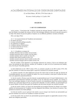 L’association dite “Académie nationale de chirurgie dentaire”, fondée le 9 juillet 1956, a pour but l’étude et les progrès des sciences, de l’art et des techniques dentaires et de tout ce qui peut concourir à cet objet.