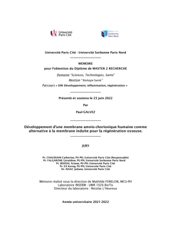 Développement d’une membrane amnio-chorionique humaine comme alternative à la membrane induite pour la régénération osseuse.