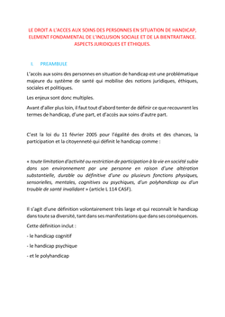 Le droit à l’accès aux soins des personnes en situation de handicap, élément fondamental de l’inclusion sociale et de la bientraitance. Aspects juridiques et éthiques