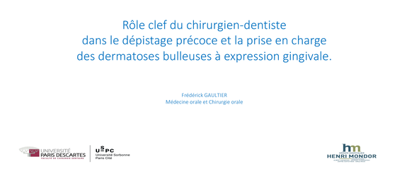 - Rôle chef du chirurgien-dentiste dans le dépistage précoce et la prise en charge des dermatoses bulleuses à expression gingivale